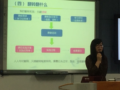 2018年6月19日下午,我校外国语学院郭晓琳教师在教师发展中心的大力支持下开展了“基于云教学的翻转课堂教学设计”工作坊。本次工作坊利用智能云教学工具蓝墨云班课平台,针对一线教师采用翻转课堂教学的模式,经过线上+线下的学习,让教师们达到认识翻转课堂、愿意并有能力采用翻转课堂的理念和方法实施教学改革, 以解决当前教育教学中的突出问题。通过课程的内容设计和教学活动形式,力促让教师们通过引导与体验,真正理解和认识到实施翻转课堂的可行性,具备设计和实施翻转课堂教学的初步能力,能够较熟练使用教学平台,具备建设简单教学资源的能力,在翻转课堂实践中顺利起步。郭老师特别强调翻转课堂设计中“以学生为中心”的理念,关注学生的学习过程以及学习发展,积极鼓励全校老师们利用云教学解决传统教学手段解决不了的难题,实现教学目标。此外,还分享了Focusky软件及PPT美化大师、口袋动画PA等小插件,有利于提高教师们的工作效率,增加教学的趣味性。