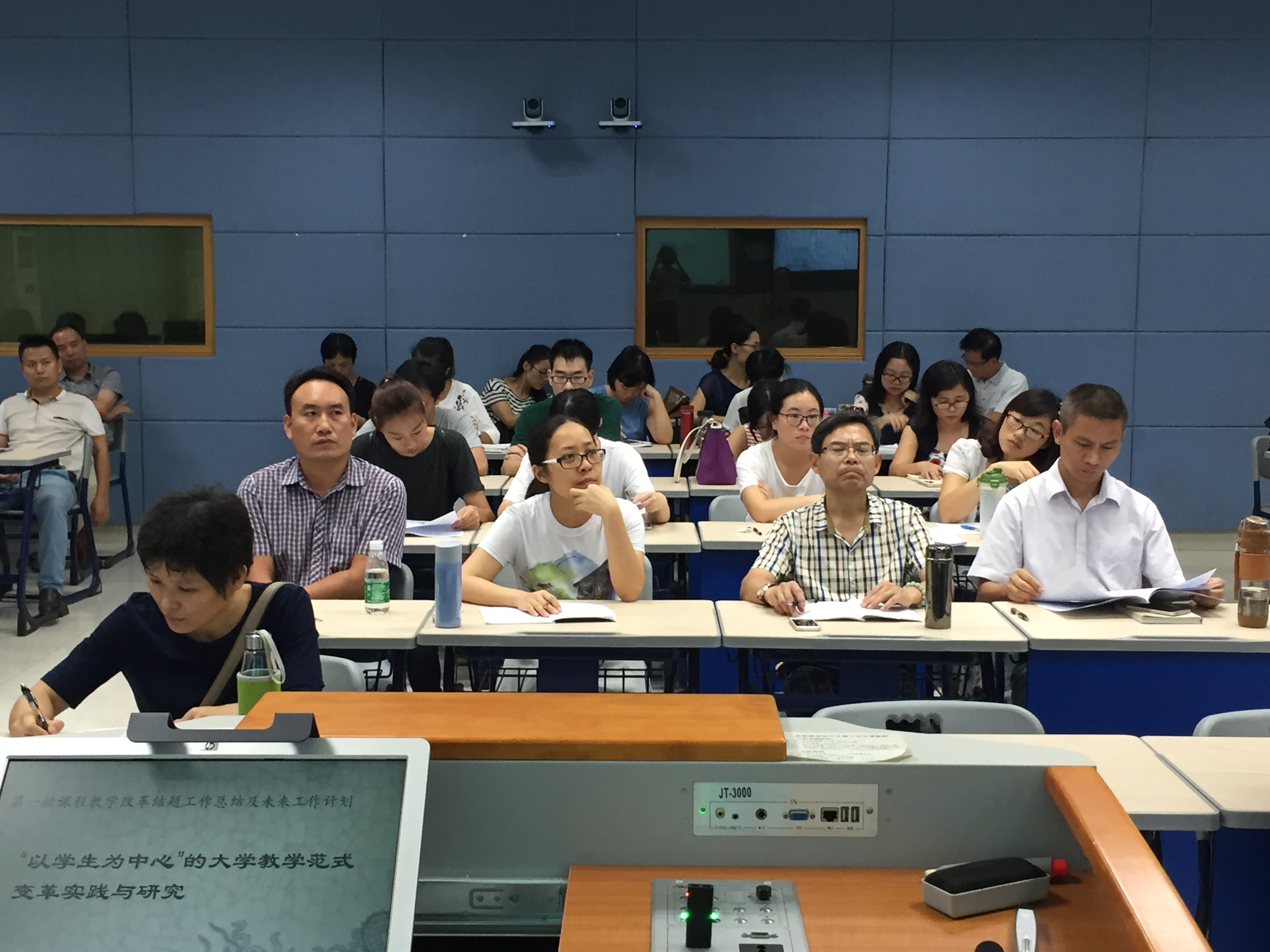 2016年9月8日,教师发展中心组织的“以学生为中心”的大学教学范式变革实践与研究项目第一批成员结题交流活动在思齐楼710录播室举行。来自9个教学单位的52名教师参加了本次活动。