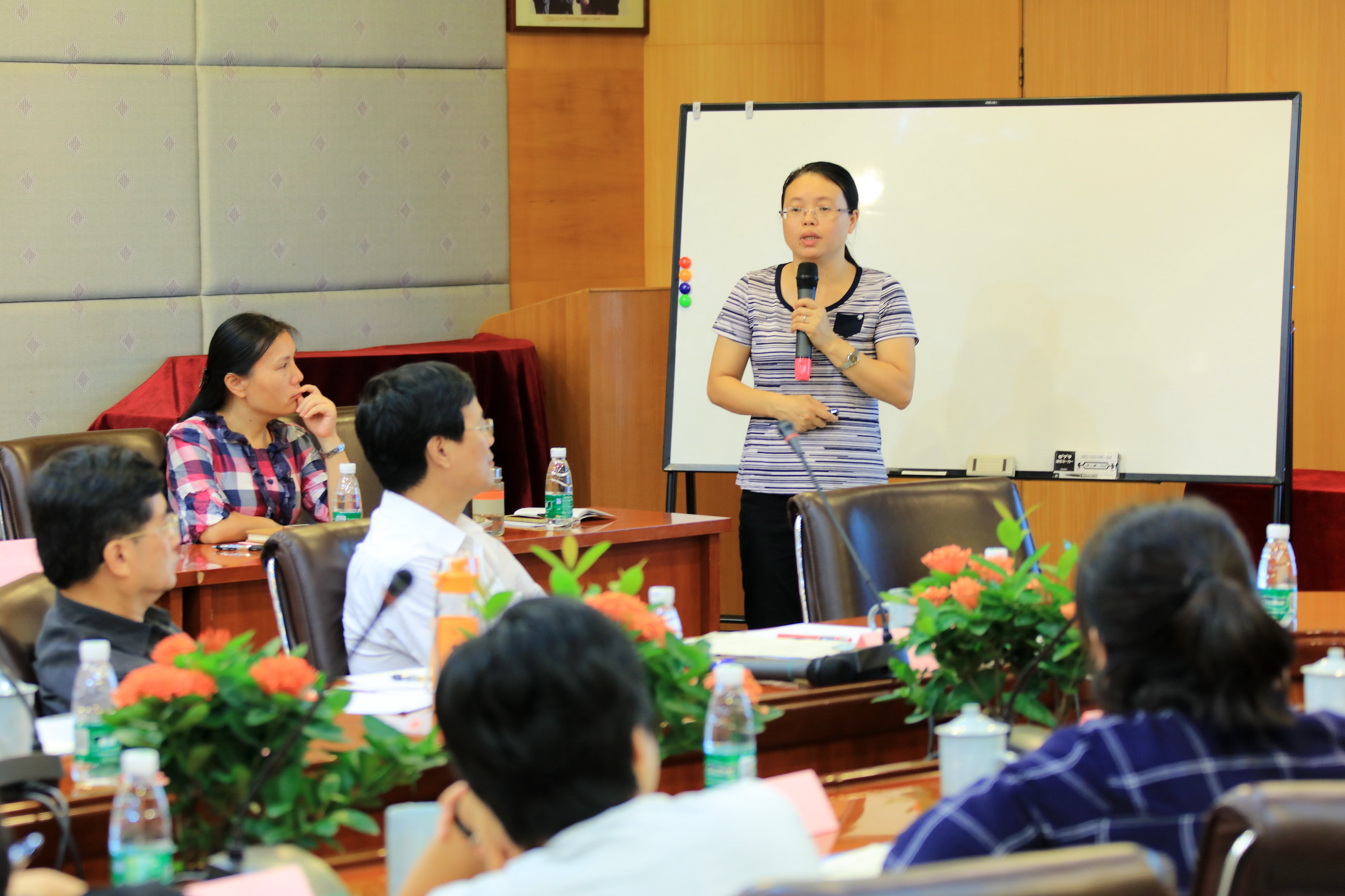 会议第一部分由广东白云学院教务处处长李红英、兼教师发展中心主任代表课题组秘书处、同时代表白云学院课题组负责人进行汇报。汇报内容聚焦四个问题:(1)项目背景,为什么要申请这个项目?这个项目是做什么的?要解决什么问题?(2)本项目2013年11月立项以来主要做的事情是什么?(3)分享第三方评估机构的中期检测报告,(4)分享本项目未来工作计划。李红英处长的汇报内容细致周到、逻辑清楚,得到何进博士、与会人员的高度认可。