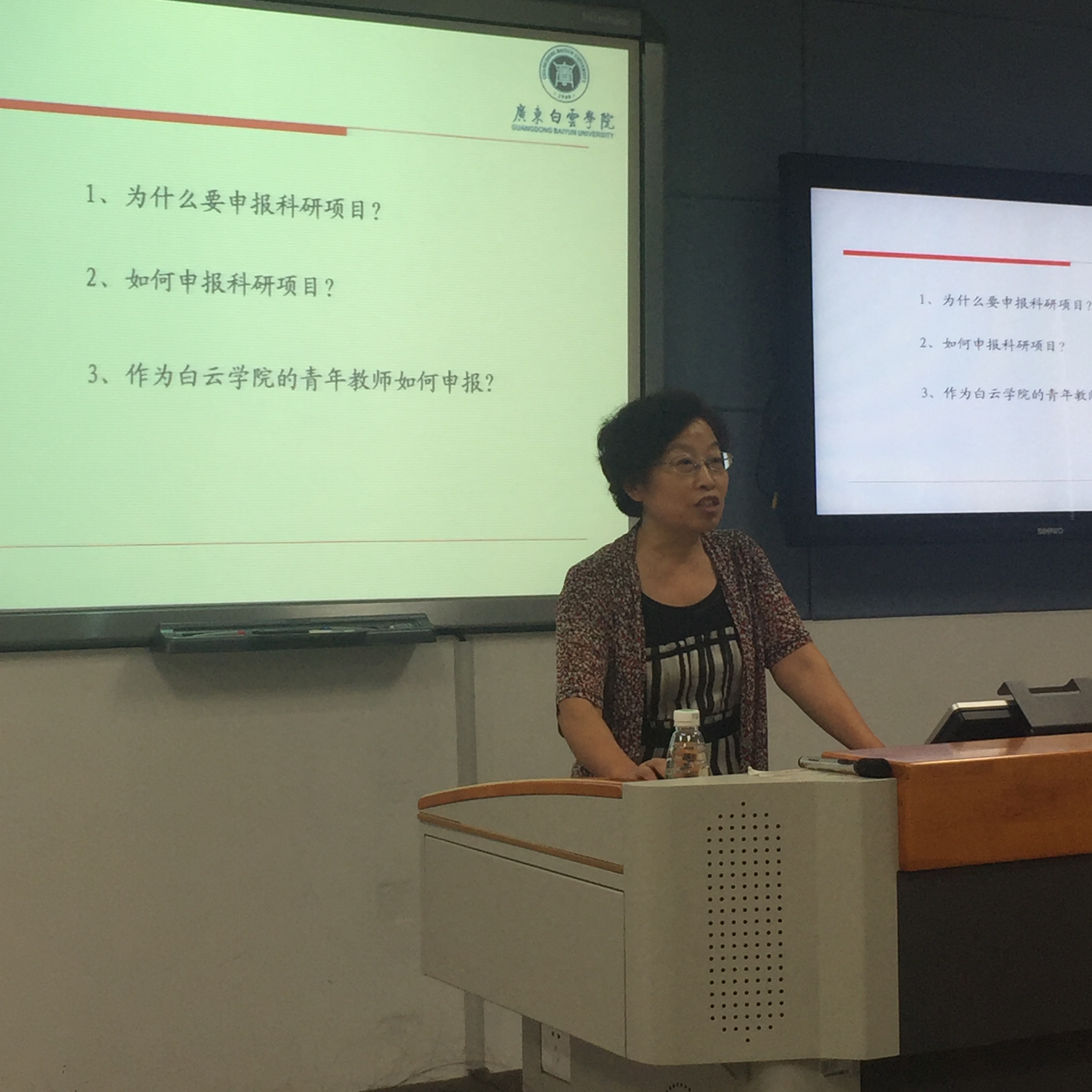 其次,周教授重点阐述了如何申报科研项目这一问题。在回答这一问题时,周教授为大家详细讲解了各级各类科研项目的类型、隶属部门以及申报要求,如数家珍。比如国家级项目包含社会科学类和自然科学与技术类,社科类项目里的国家社会科学基金(简称国家社科基金),由全国哲学社会科学规划办公室负责管理,而自然科学与技术类项目统一由科技厅管理,这类项目我校还没有申请过。数过国家级项目之后就是省部级项目,包括社会科学类、自然科学与技术类、广东省创新强校项目三大类。其中我校立项的创新强校项目每年约有12项,有些类型的项目申请人必须是具备一些条件。例如青川创新人才项目要求申报人年龄为35周岁以下,职称为副高以下,而特色创新项目则要求职称为副高及以上。此外我校教师还可以申报由各类学科学会、协会组织的项目,以及白云区科技项目,周教授期待我校中青年教师积极尝试。申报科研项目尤其需要注意各级各类项目的申请时间与截止时间,有些项目无申报时间,功在平时,比如有些广东省、广州市校企合作项目。我校教师可以留意科研处的通知或者相关网站通知,科研处会及时更新各项目的时间要求,希望申请人自己密切关注。